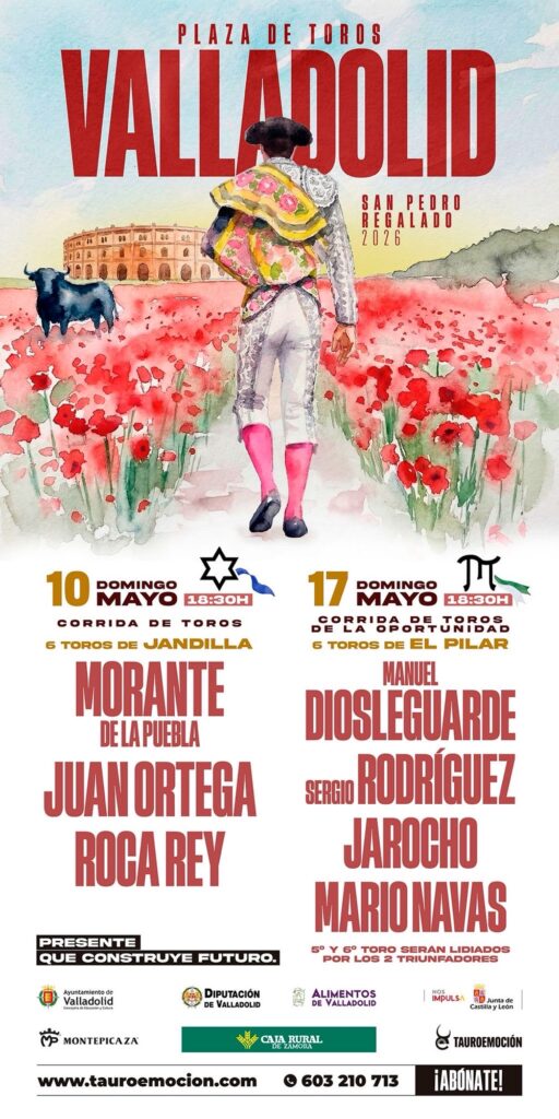 La programación se estructura en torno a dos grandes citas dominicales. La primera gran tarde de la feria tendrá lugar el domingo 10 de mayo, una jornada de máxima expectación que reunirá en el coso del Paseo de Zorrilla a Morante de la Puebla, Juan Ortega y Roca Rey. Esta terna de figuras se encargará de lidiar un encierro con la divisa de la ganadería de Jandilla, asegurando un cartel de enorme atractivo para el gran público.